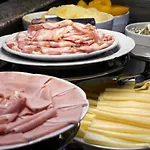 Hot and above average breakfast for the start of the day with salads and sweet options and amazing croissants. Central location and walking distance to a subway station.