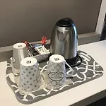 Il y a une cafetière/théière, du café et un réfrigérateur dans la chambre. J'ai adoré les cafés et thés au bar.
