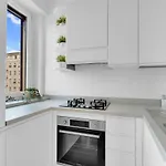 L'appartement dispose d'une cuisine équipée d'un four et d'un lave-vaisselle. De plus, la station de métro De Angeli est à 750 mètres.