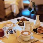 Misafirperver atmosferde restoranda açık büfe kahvaltı servis edilir. Misafirler meze barında bir içecekle dinlenmeye davet edilir. Misafirler, yemek için 550 metre uzaklıkta bulunan ve Çin mutfağından yemekleri sunan pizzacı La Cascata'ı seçebilirler.